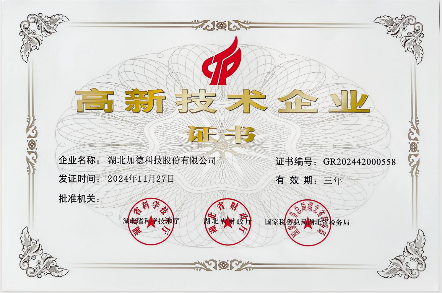 高新技術(shù)企業(yè)證書