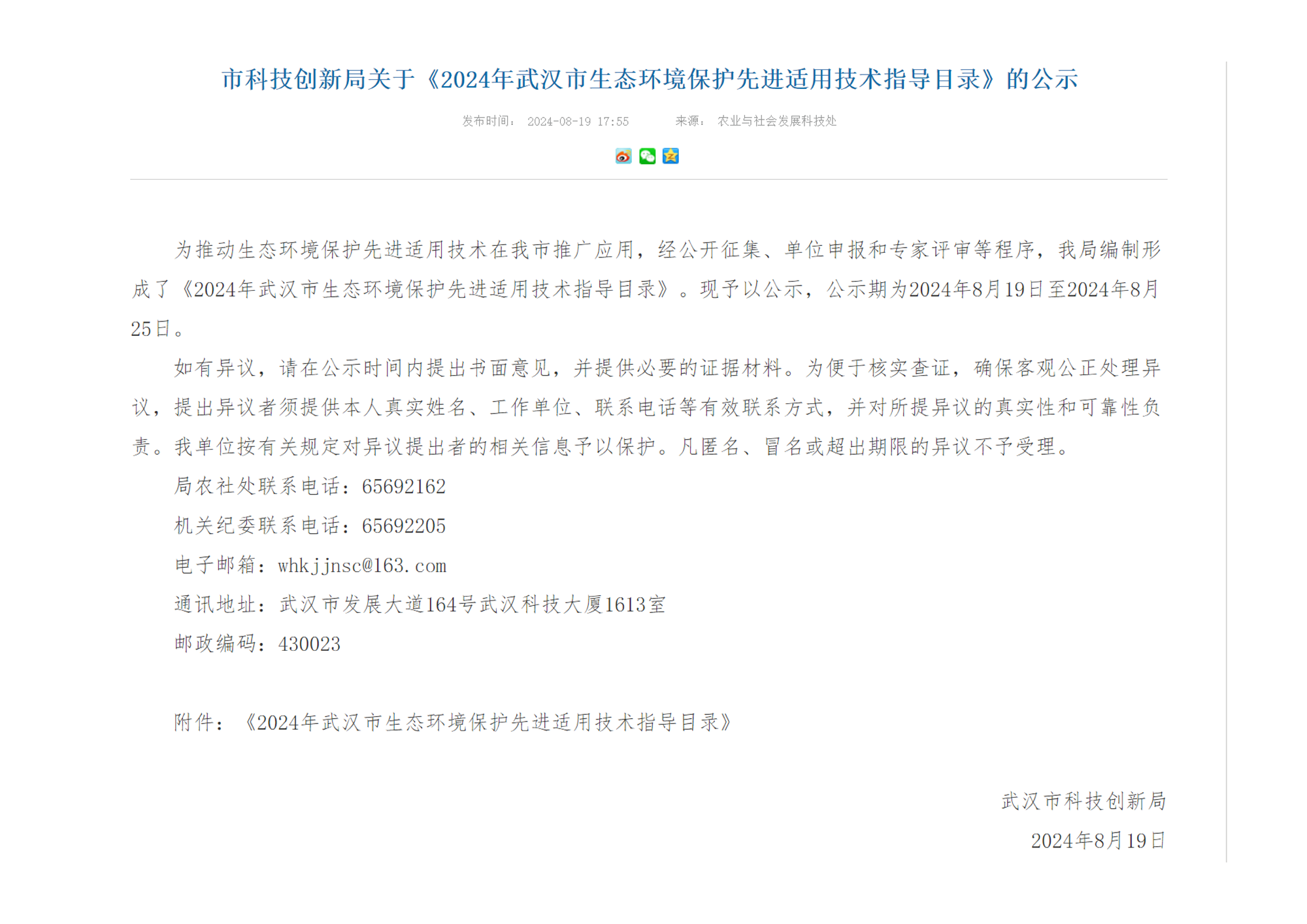 2024年武漢生態(tài)環(huán)境保護先進適用技術名錄