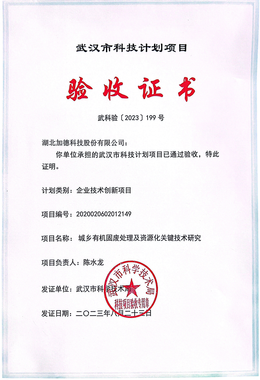 “城鄉(xiāng)有機固廢處理及資源化關(guān)鍵技術(shù)研究”驗收證書