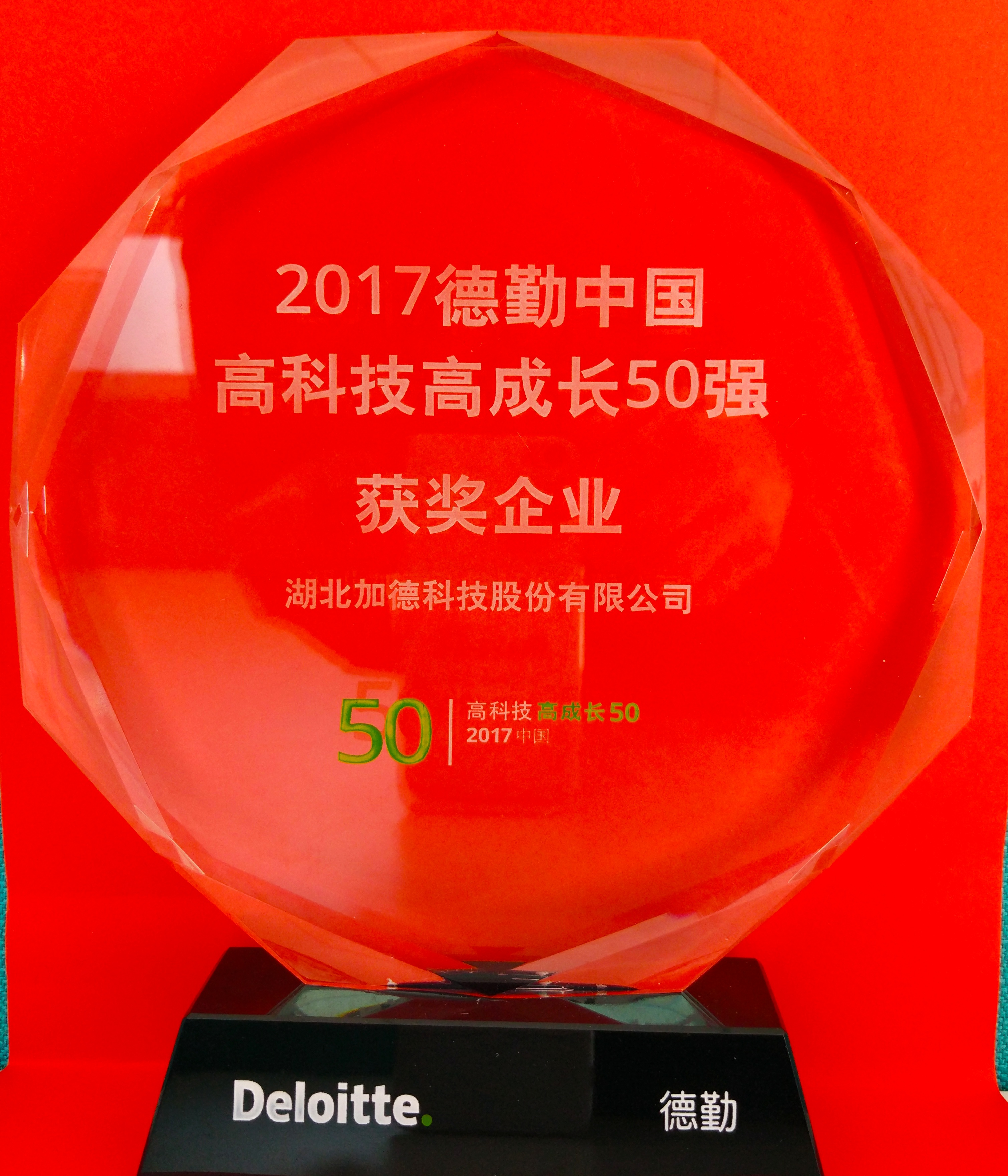 10月27日,由德勤與武漢東湖新技術開發(fā)區(qū)管理委員會共同主辦,以期表彰武漢光谷地區(qū)高速成長、持續(xù)創(chuàng)新的卓越企業(yè)的“2017年度德勤-光谷高科技高成長20強”(簡稱“光谷20強”)和“德勤-光谷明日之星”(簡稱“光谷明日之星”)評選結果揭曉。 湖北加徳科技股份有限公司榮獲 "20...MORE →