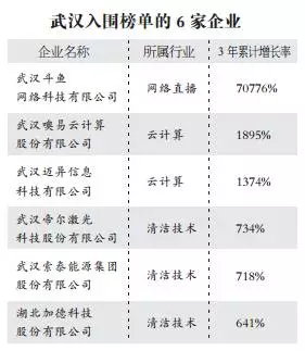 今年“德勤中國50強”整體收入增長高達2978%,是歷史最高水平,比2016年增長26.8%。上榜的最低門檻是3年累計增長率達到574%。比較2016年和2017年“德勤中國50強”中的武漢企業(yè)發(fā)現(xiàn),今年6家企業(yè)中除噢易云公司外都是首次上榜,斗魚一上榜即占據(jù)榜首位置。