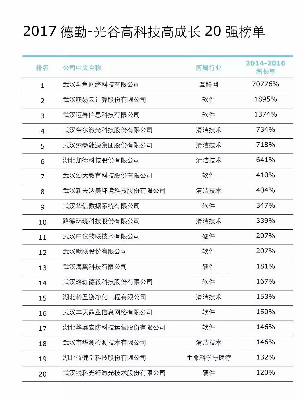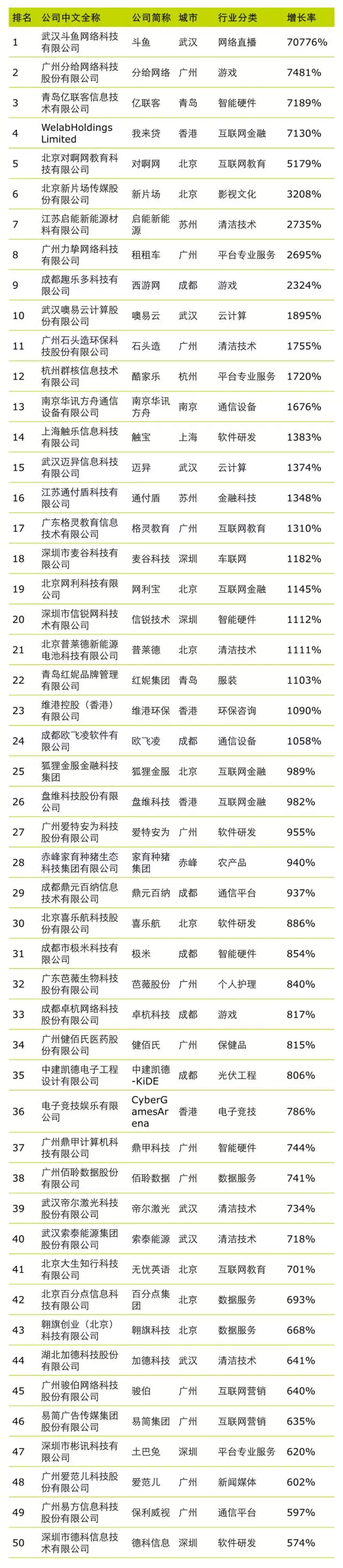 2017德勤高科技高成長中國50強榜單: