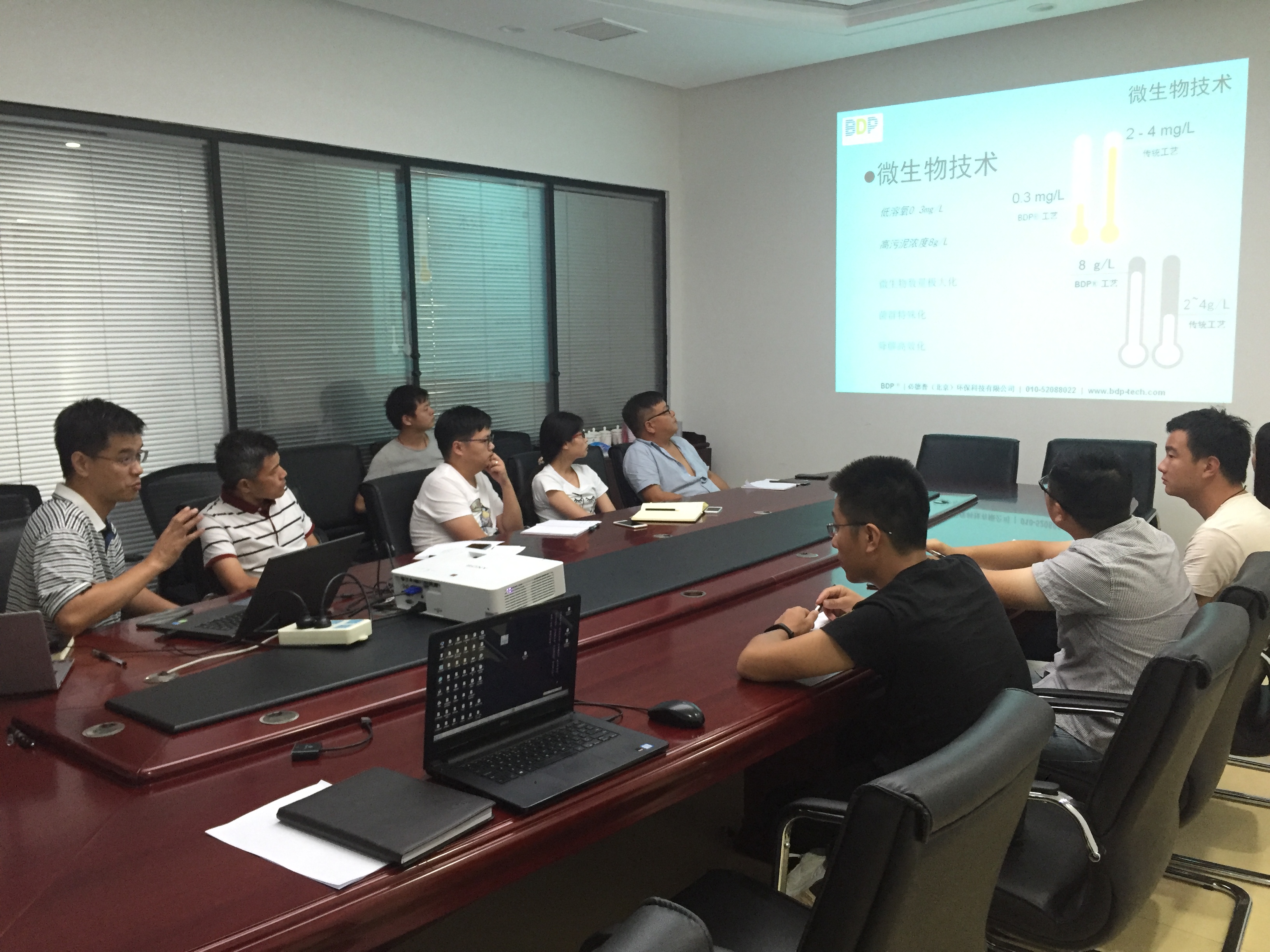 隨后,李總通過詳細(xì)的技術(shù)介紹PPT,系統(tǒng)講解了BDP工藝的設(shè)計(jì)理念、工作原理,并對它的運(yùn)行特點(diǎn)、設(shè)備結(jié)構(gòu)、主要操作參數(shù)、注意事項(xiàng)以及常見故障的處理辦法進(jìn)行了詳細(xì)講解。在座人員認(rèn)真聽講,詳細(xì)記錄,并對講解中的疑難問題進(jìn)行了互動(dòng)討論。
