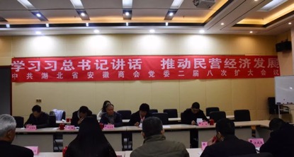 2018年11月12日下午,中共湖北省安徽商會(huì)黨委以學(xué)習(xí)習(xí)總書記講話,推動(dòng)民營(yíng)經(jīng)濟(jì)發(fā)展為主題的二屆八次擴(kuò)大會(huì)議,在黃鶴樓酒業(yè)博物館會(huì)議室召開(kāi)。黨委成員王志菁、許鵬、范德明、姚鄒、汪武兵、朱仕香、周桃紅、盧滿寶、王建瑞、李莉出席;湖北省安徽商會(huì)會(huì)長(zhǎng)馬占軍、湖北省社會(huì)組織管理局調(diào)研員涂才江等出席會(huì)議并發(fā)表講話。會(huì)議由黨委書記王志菁主持。