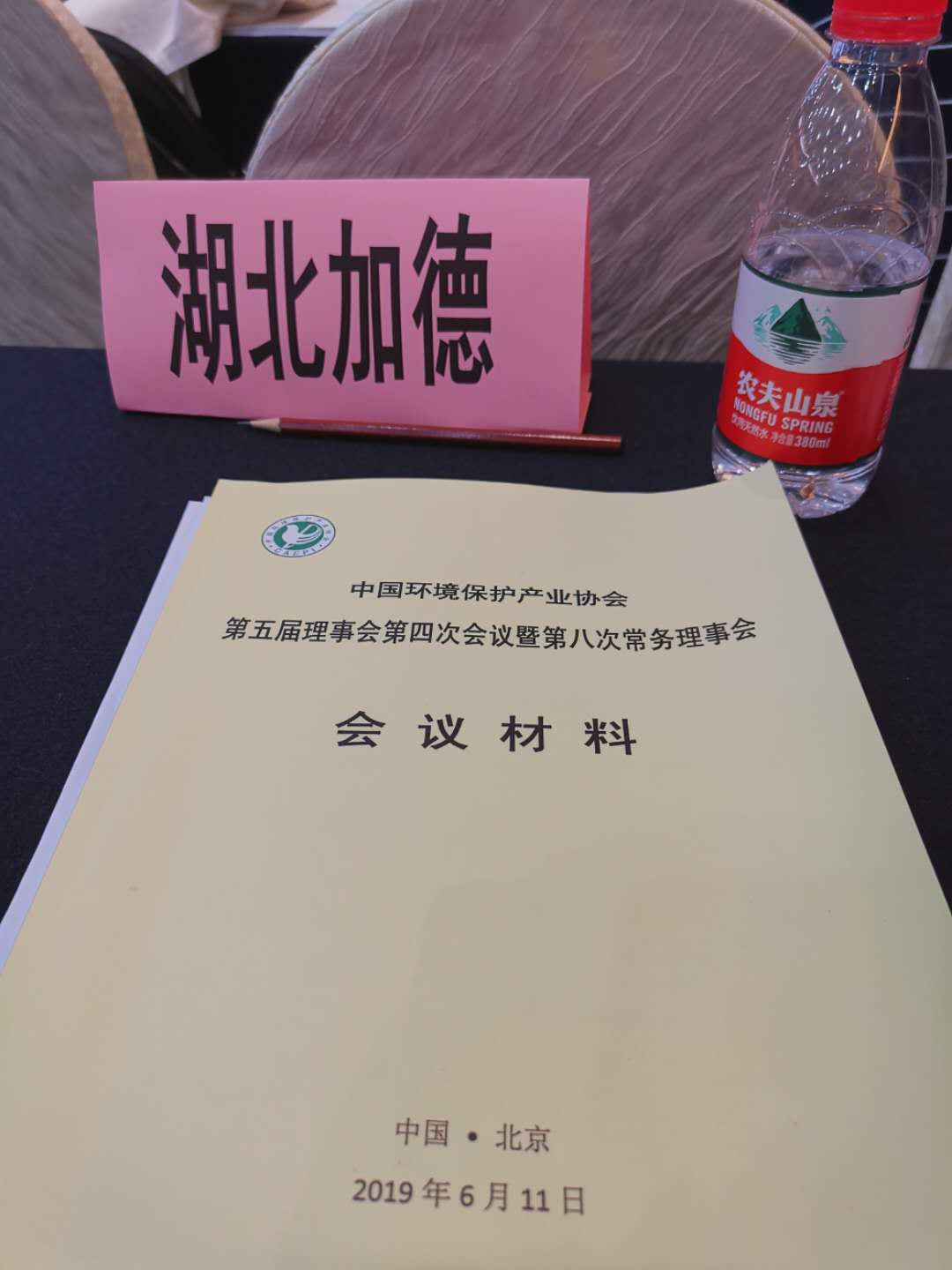 2019年6月11日,中國環(huán)境保護(hù)產(chǎn)業(yè)協(xié)會第五屆理事會第四次會議暨第八次常務(wù)理事會議在北京召開。湖北加德科技股份有限公司作為中環(huán)協(xié)常務(wù)理事單位,由公司總經(jīng)理張立民代表參加會議。