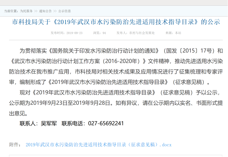 9月23日,武漢市科技局將《2019年武漢市水污染防治先進(jìn)技術(shù)指導(dǎo)目錄》進(jìn)行了網(wǎng)上公示。我公司自主研發(fā)的“市政污泥堆場快速原位固化材料及設(shè)備新技術(shù)”成功入選。