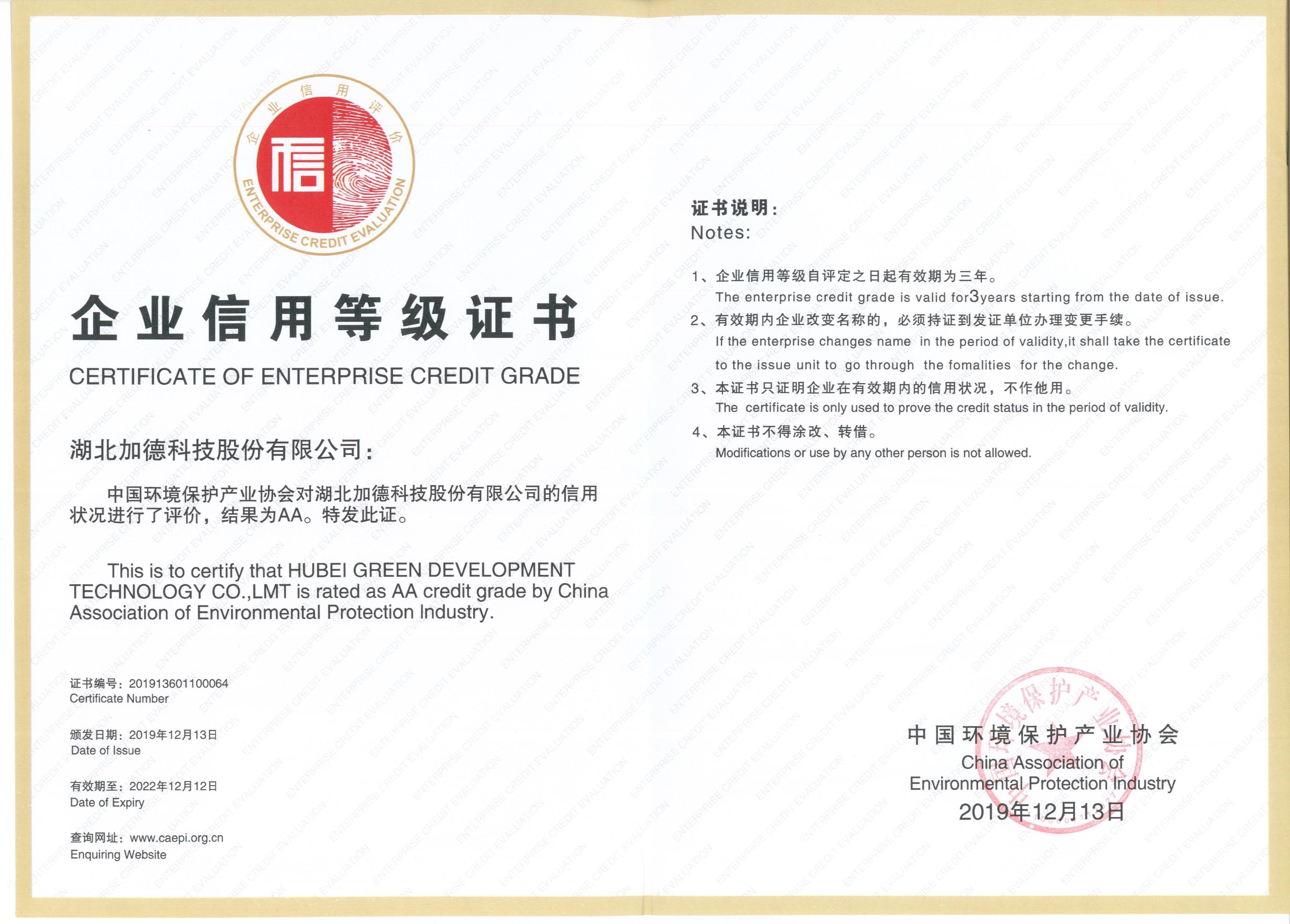 中國環(huán)境保護(hù)產(chǎn)業(yè)協(xié)會企業(yè)信用評價(jià)指標(biāo)涵蓋企業(yè)的價(jià)值理念、管理能力、財(cái)務(wù)能力、市場能力、履約能力、社會責(zé)任和環(huán)境保護(hù)情況等要素。此AA信用評級的獲得,標(biāo)志著我司綜合素質(zhì)、管理水平、財(cái)務(wù)狀況、社會信用等多方面情況優(yōu)良獲得環(huán)保行業(yè)業(yè)界肯定。