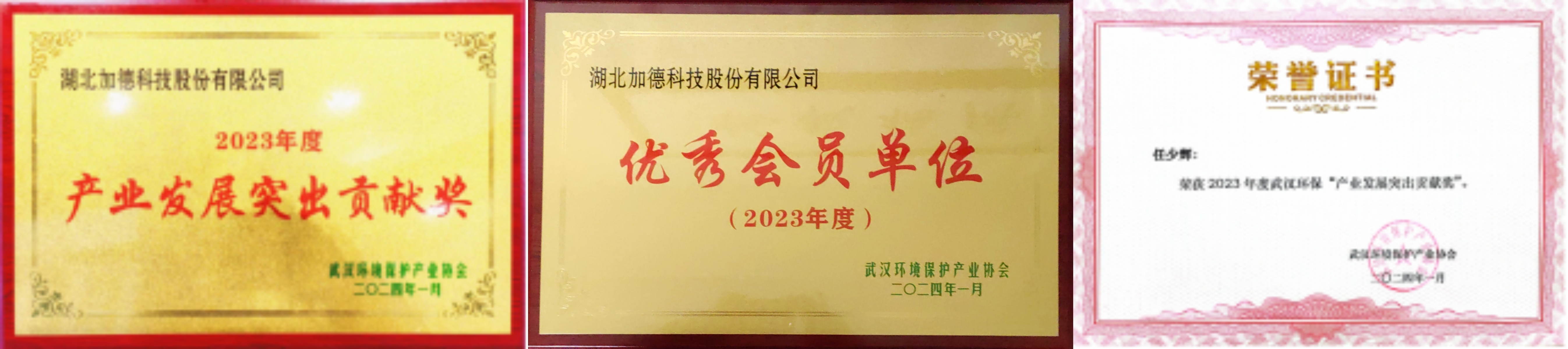 會上,加德科技榮獲“2023年度產(chǎn)業(yè)發(fā)展突出貢獻(xiàn)獎”、“2023年度優(yōu)秀會員單位”,公司總工程師任少輝榮獲2023年度武漢環(huán)保 “產(chǎn)業(yè)發(fā)展突出貢獻(xiàn)獎”。