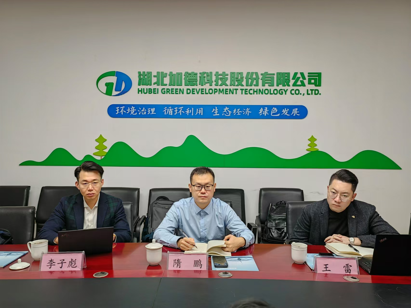 2024年11月19日下午,天津市投資促進(jìn)局副處長(zhǎng)隋鵬領(lǐng)導(dǎo)一行蒞臨加德科技考察交流,加德科技公司董事長(zhǎng)周桃紅、總工程師任少輝、副總龔茂生熱情接待,并舉行座談會(huì)議。